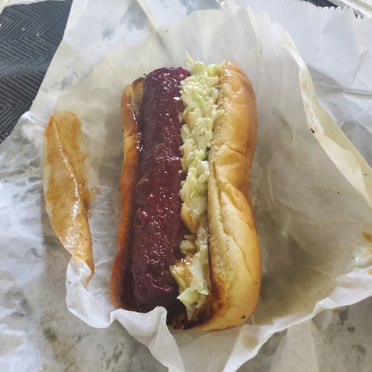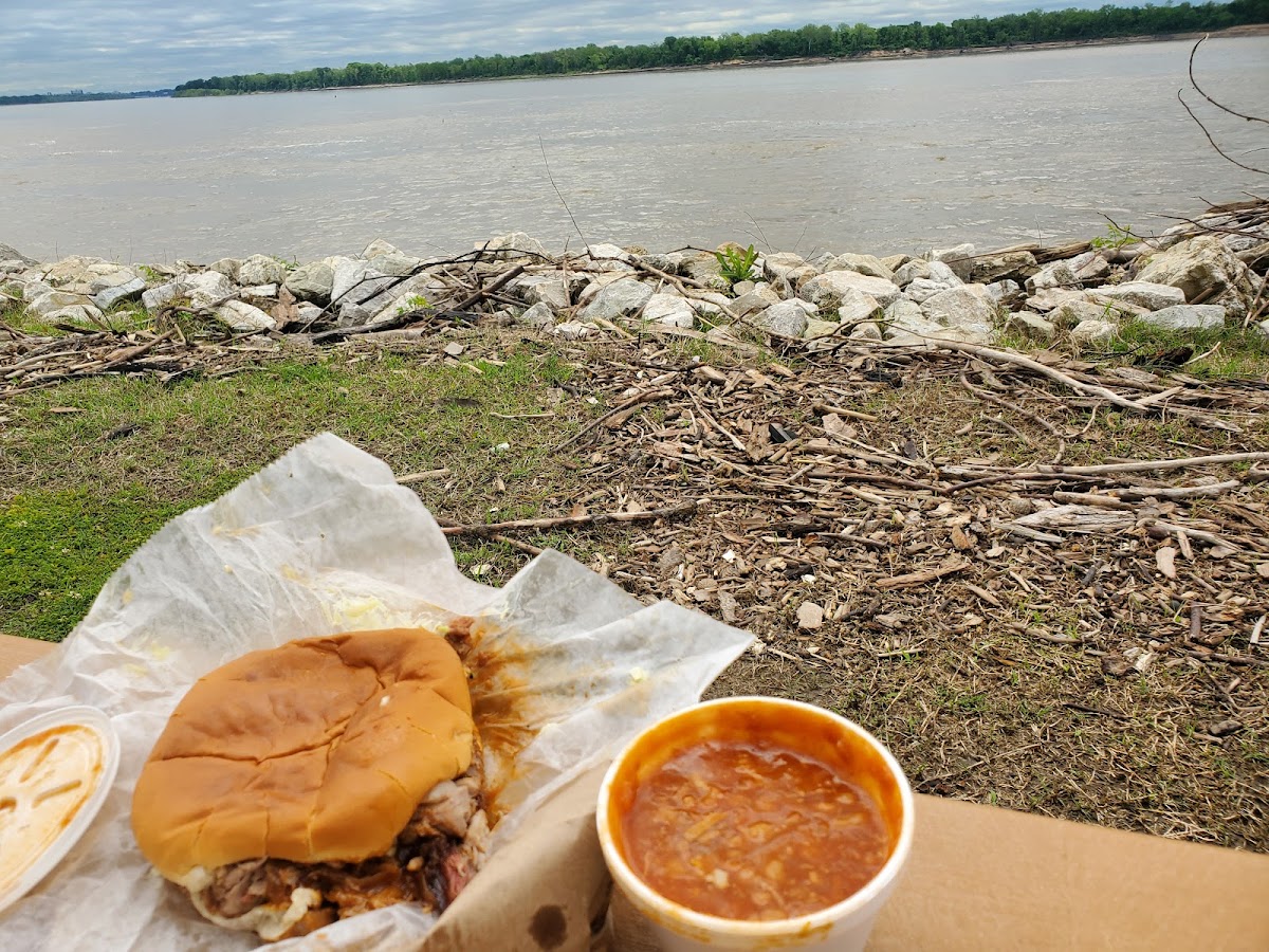 This food was DELICIOUS! I’m coming all the way from Chicago too. The beans were sweet and good and the chopped meat was tinder with the slaw on top. Highly recommend the BBQ sandwich, baked beans and smoked sausage with the slaw as they say it down here lol.