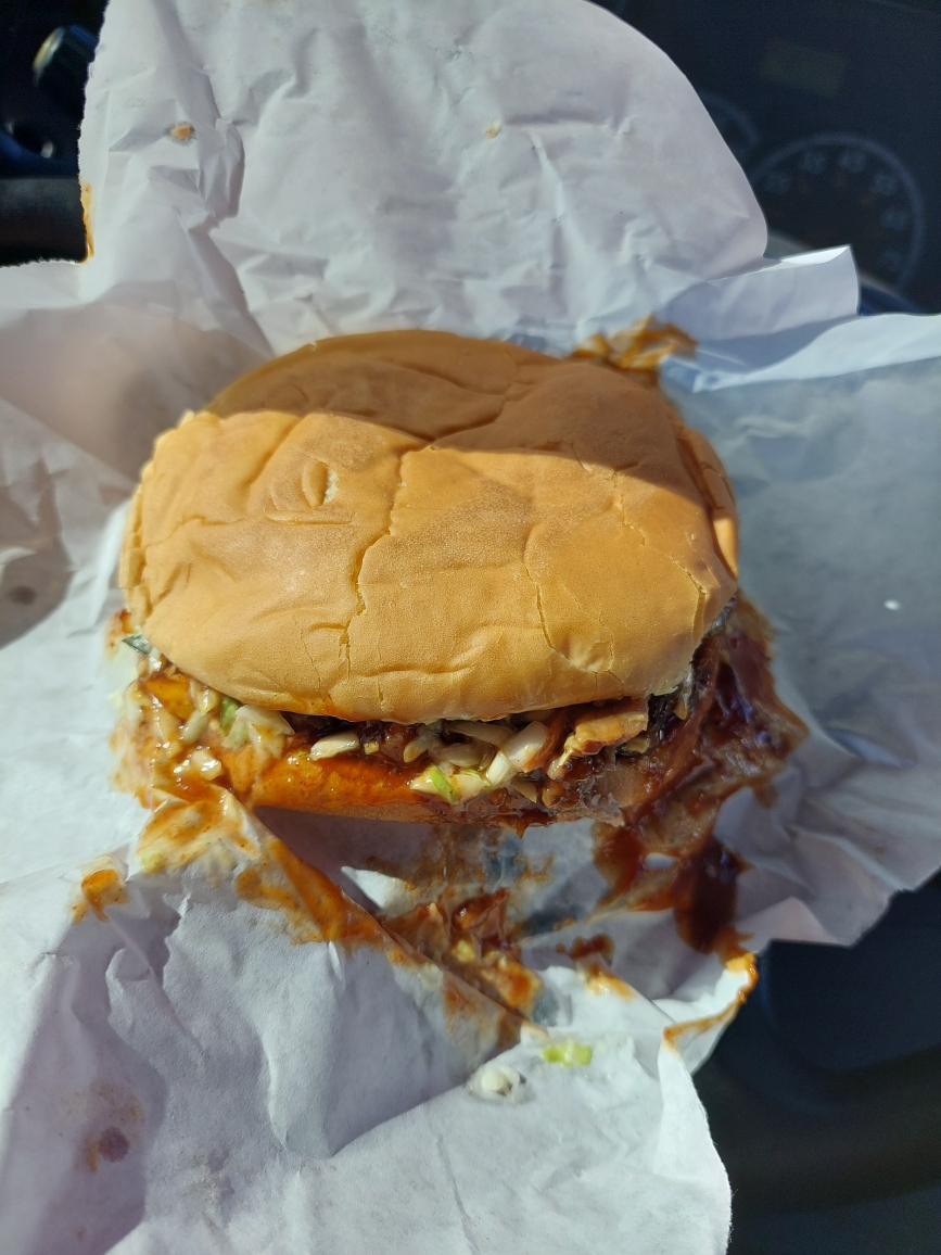 Very good basic bbq sandwich. Got the pate with fries and a drink. Left feeling full. Very clean looking place for being in business 55 years. They also have burgers and catfish and bbq bologna. They do a lot of take out, but they have seating for about 8 people. I’ll be back